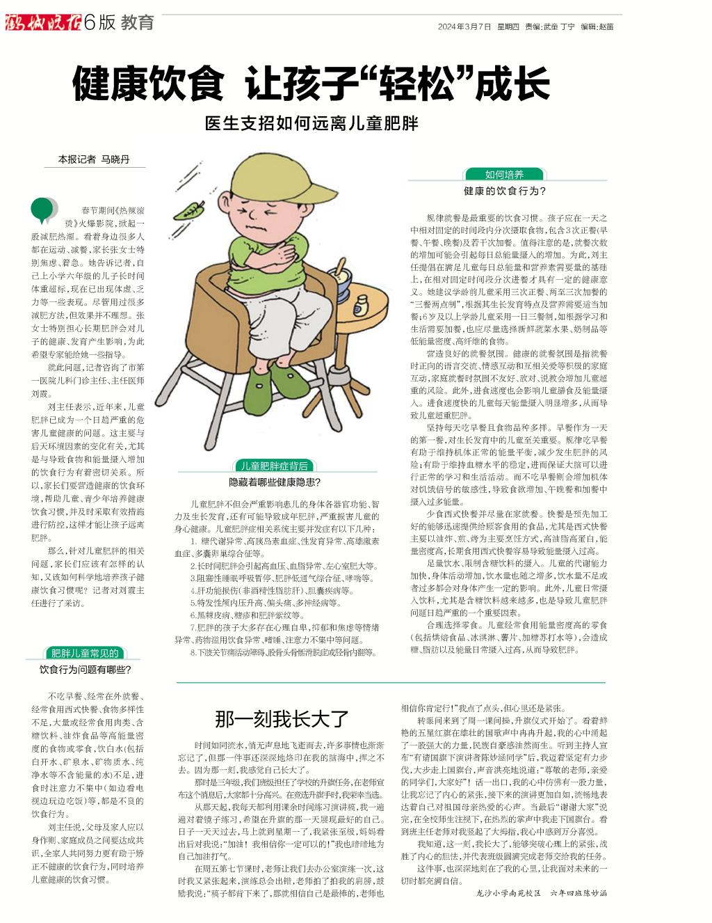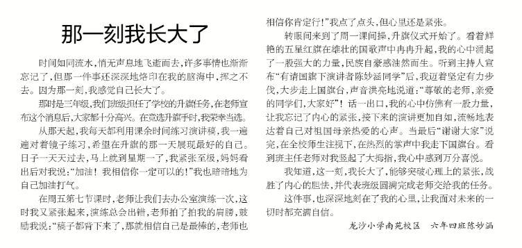 《鹤城晚报》发表子弟学校学生作文《那一刻我长大了》
