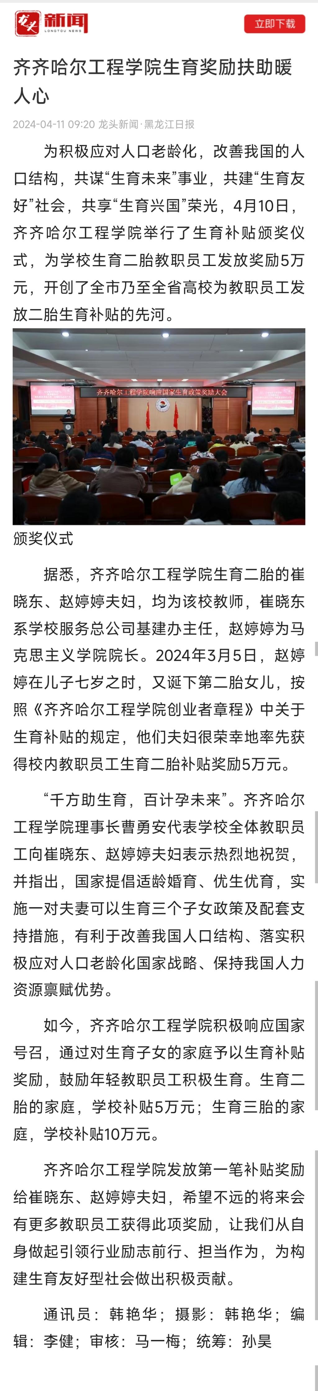 《龙头新闻》报道Beat365中文官方网站生育奖励扶助暖人心
