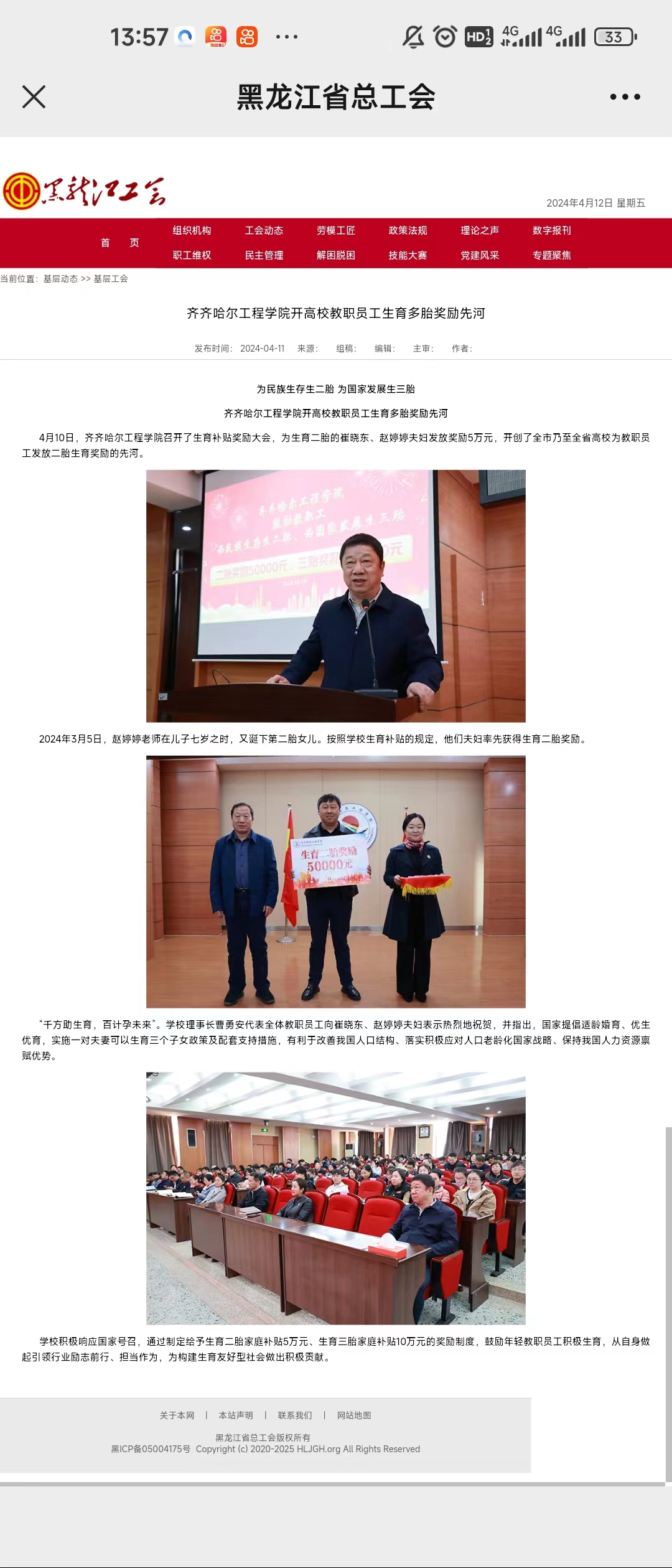 《黑龙江省总工会》发表Beat365中文官方网站开高校教职员工生育多胎奖励先河