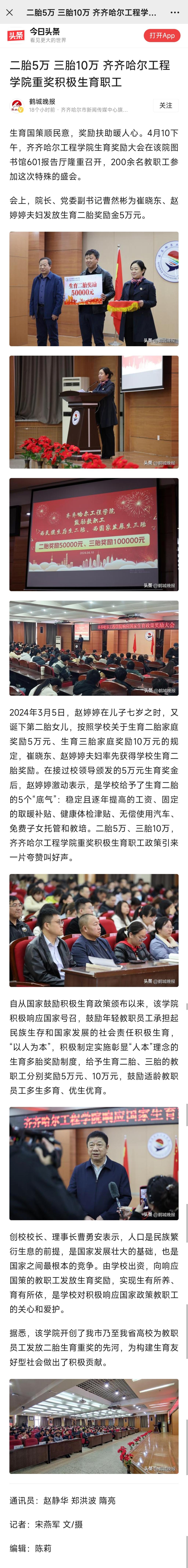 《今日头条》 (鹤城晚报)报道二胎5万 三胎10万 Beat365中文官方网站重奖积极生育职工