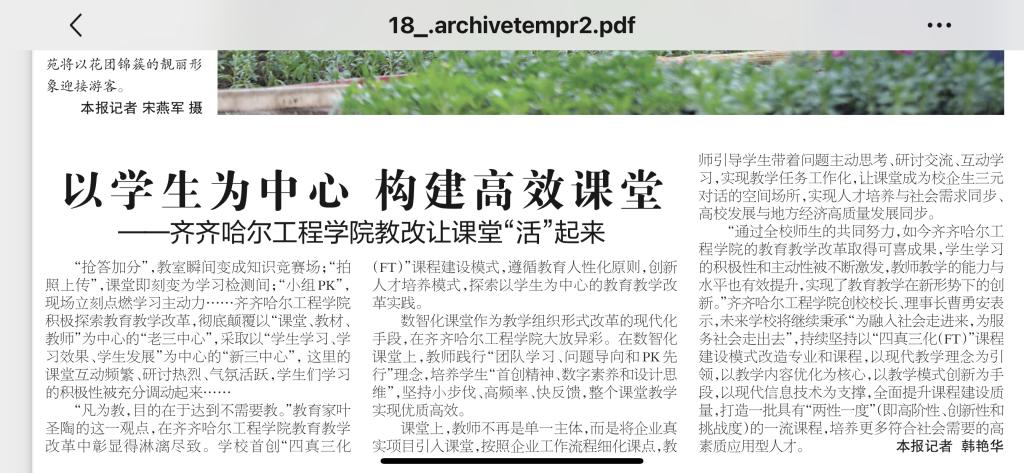 《齐齐哈尔日报》报道以学生为中心 构建高效课堂——Beat365中文官方网站教改让课堂“活”起来