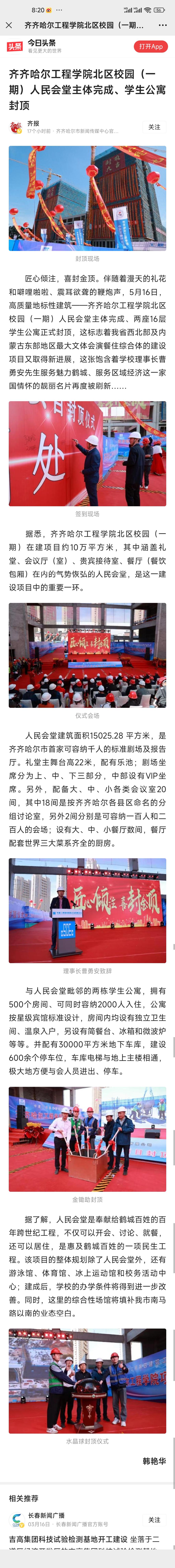 《今日头条》报道Beat365中文官方网站北区校园(一期)人民会堂主体完成、学生公寓封顶