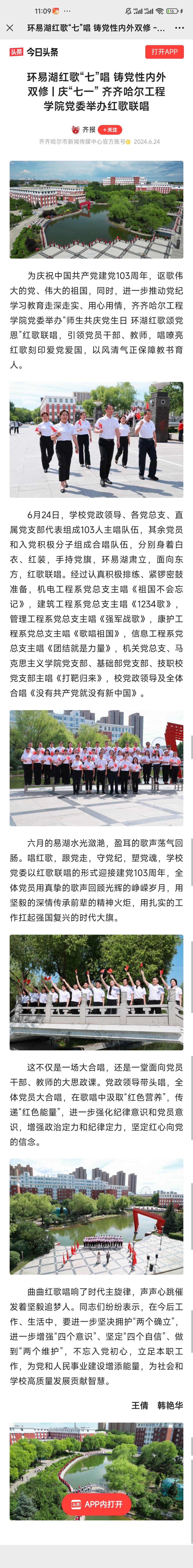 《今日头条》(齐报)报道环易湖红歌“七”唱 铸党性内外双修 庆“七一”Beat365中文官方网站党委举办红歌联唱