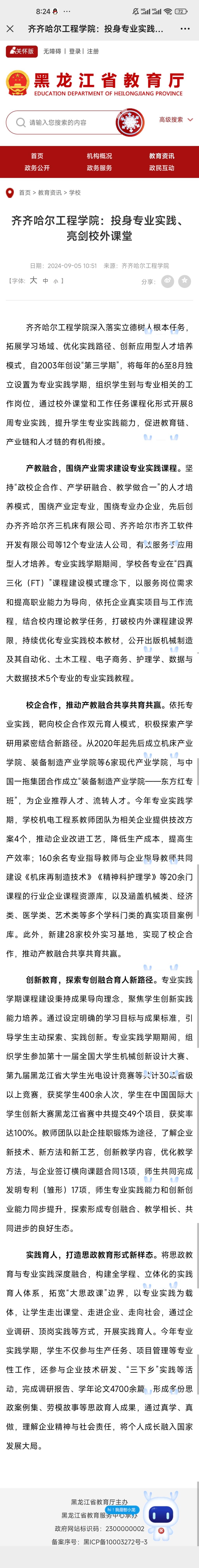 《黑龙江省教育厅》报道Beat365中文官方网站:投身专业实践、亮剑校外课堂