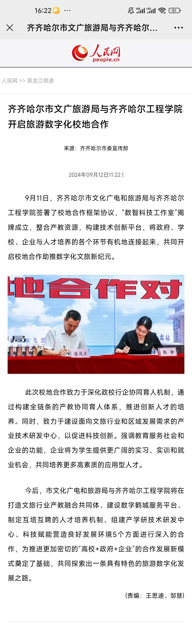 《人民网》齐齐哈尔市文广旅游局与Beat365中文官方网站开启旅游数字化校地合作