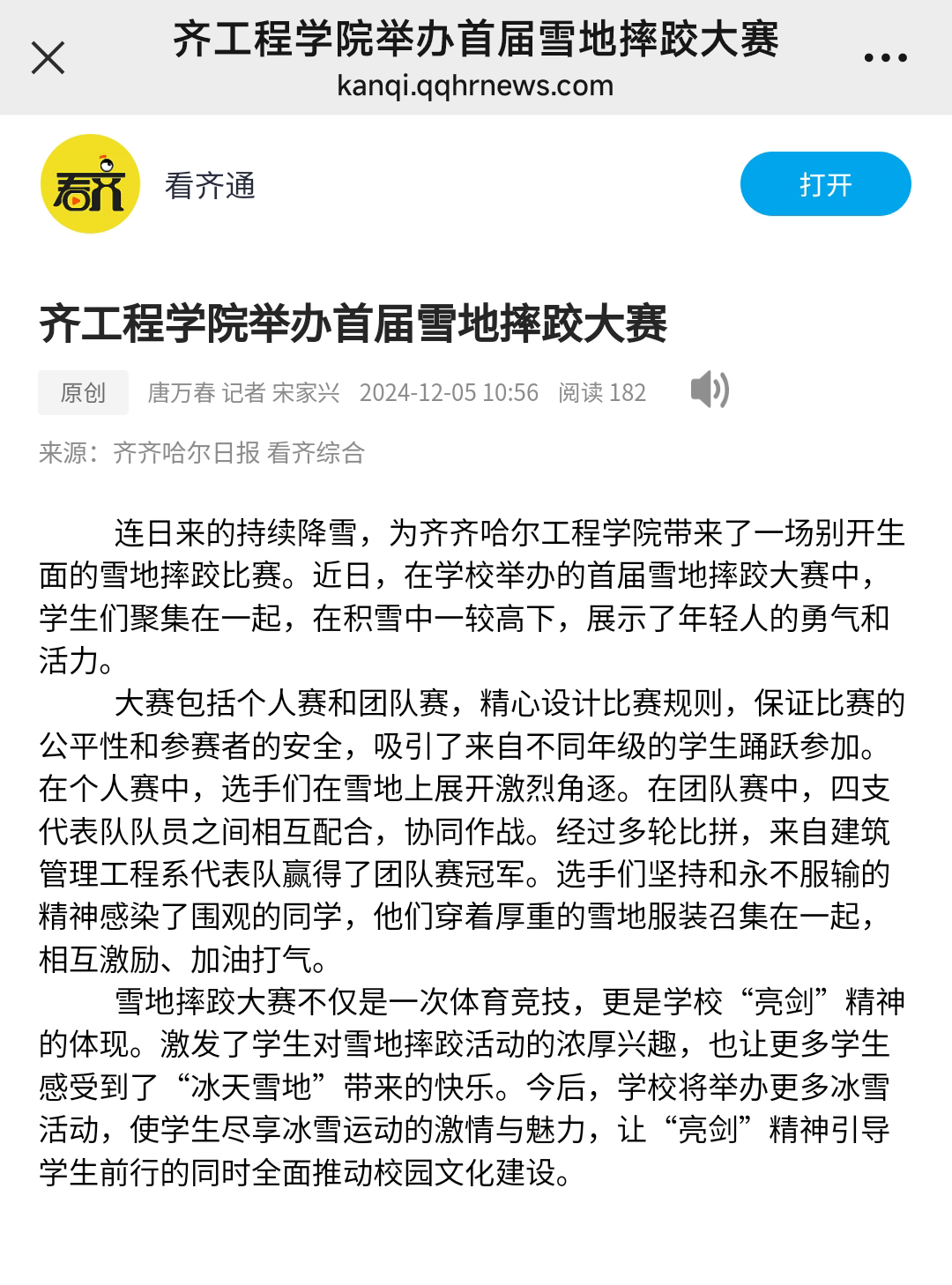 《看齐通》齐工程学院举办首届雪地摔跤大赛
