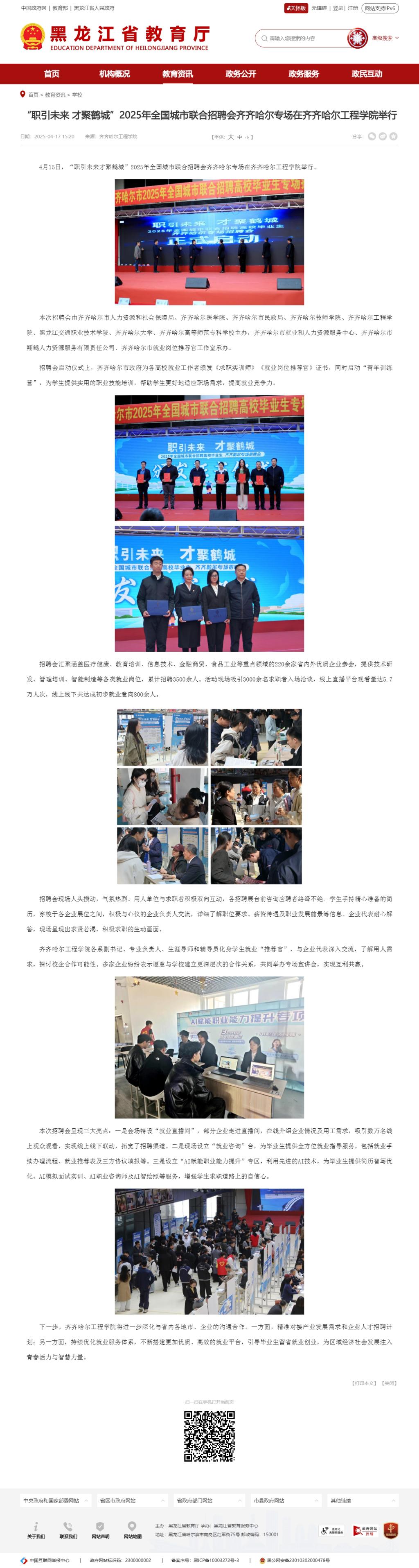 《黑龙江省教育厅》“职引未来 才聚鹤城”2025年全国城市联合招聘会齐齐哈尔专场在Beat365中文官方网站举行
