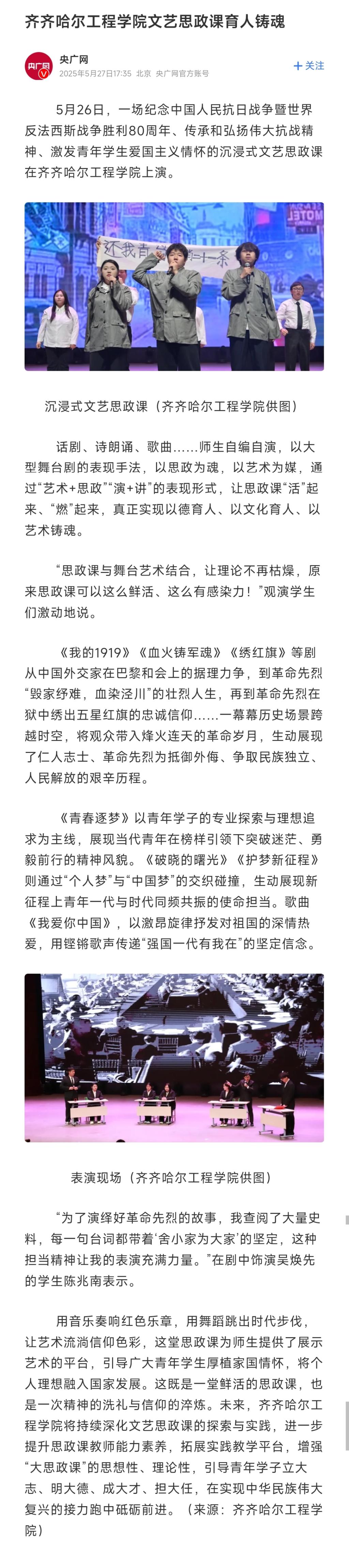 《央广网》Beat365中文官方网站文艺思政课育人铸魂