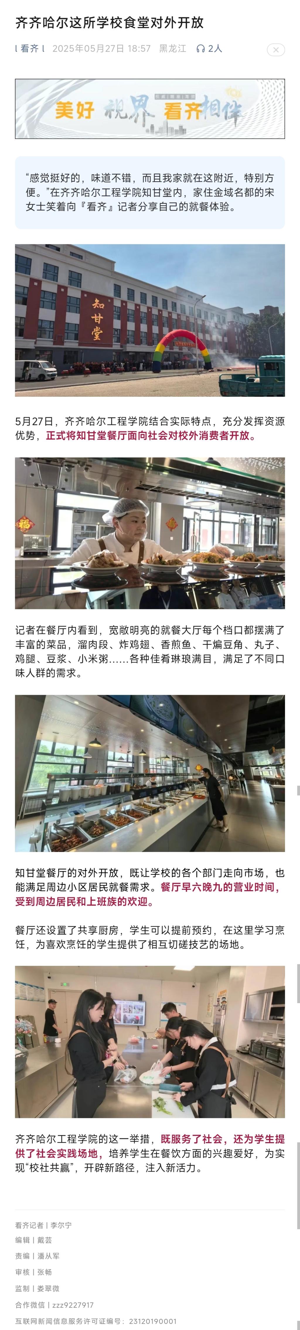 《看齐》齐齐哈尔这所学校食堂对外开放