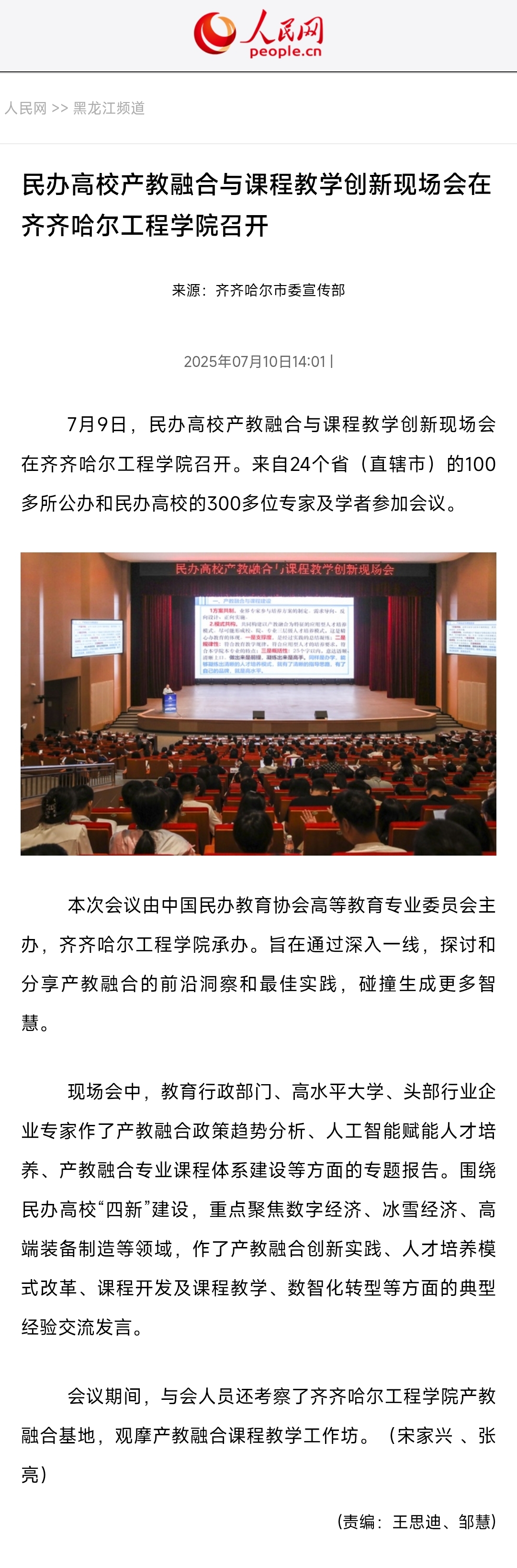 《人民网》民办高校产教融合与课程教学创新现场会在Beat365中文官方网站召开