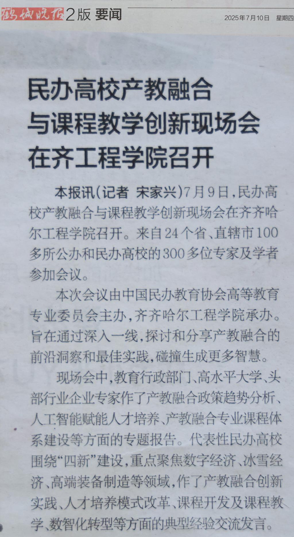 《鹤城晚报》民办高校产教融合与课程教学创新现场会在齐工程学院召开