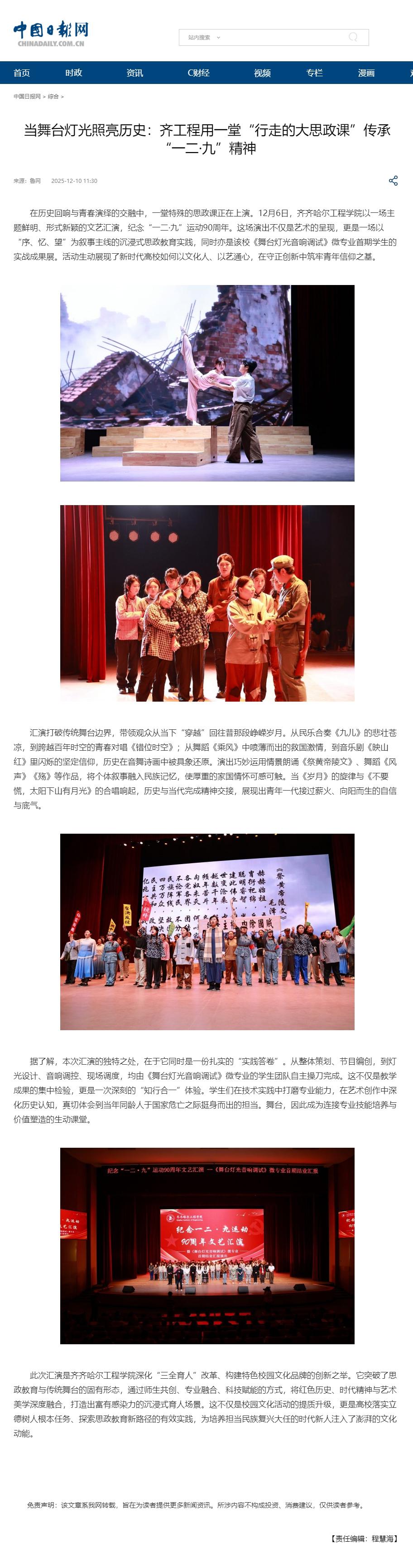 《中国日报网》当舞台灯光照亮历史:齐工程用一堂“行走的大思政课”传承“一二·九”精神
