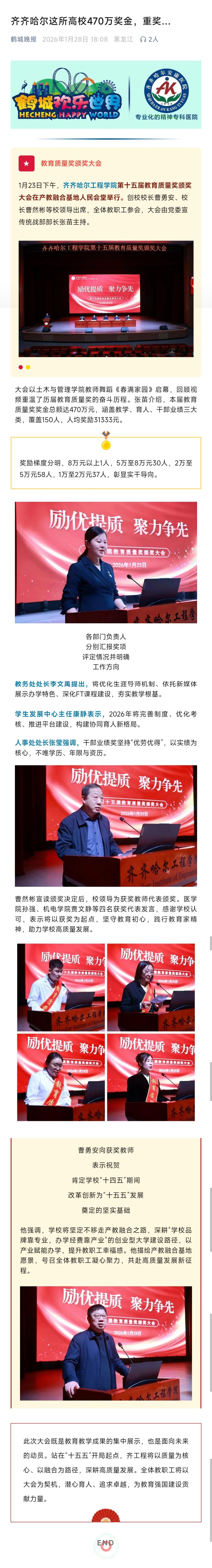 《鹤城晚报》齐齐哈尔这所高校470万奖金,重奖…