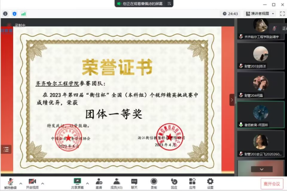 5月10日,从第四届“衡信杯”全国个税师精英挑战赛在线进行颁奖典礼上传来喜讯:Beat365财管专业学生从156所参赛本科院校中脱颖而出,荣获了“团体一等奖”,于骁晗、夏丹、赵靖宇、王微双、刘程、金铁铮六位指导教师获得“优秀指导老师”称号,张宝娟、梁正玉两位同学更是获得了“全国个税师百强”的殊荣。