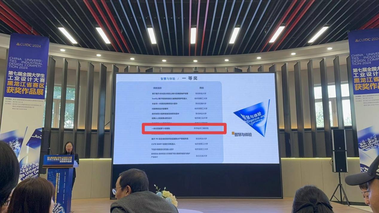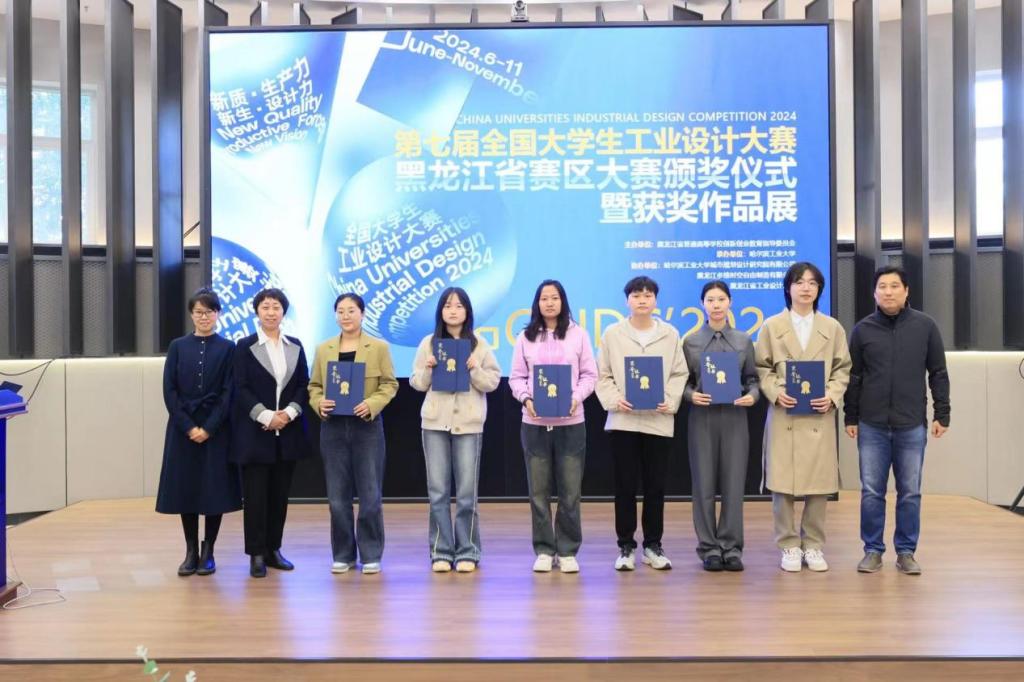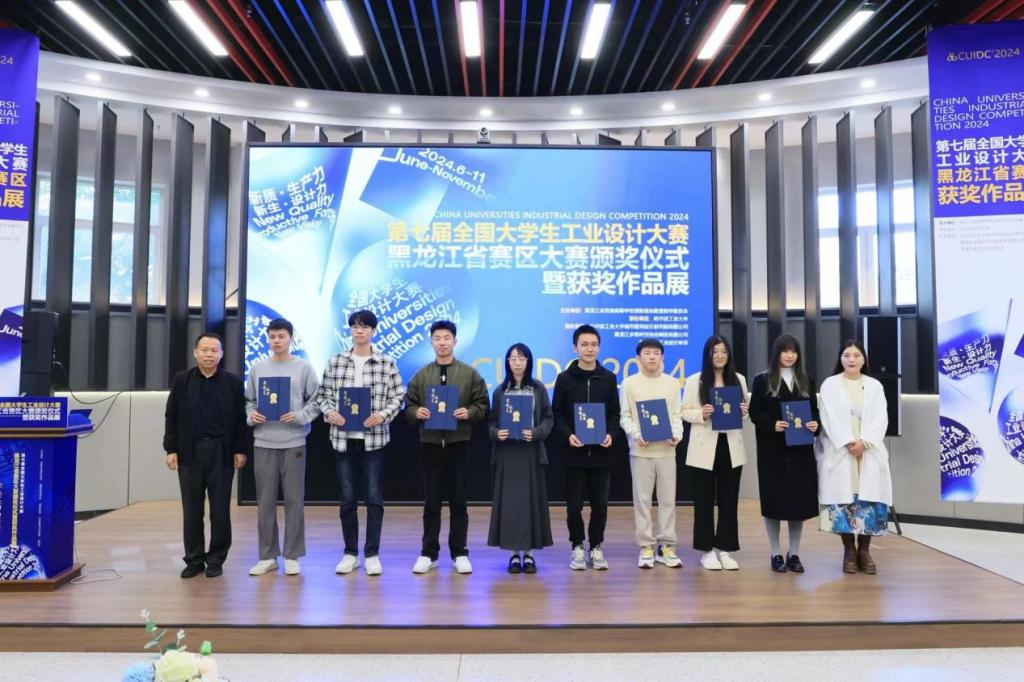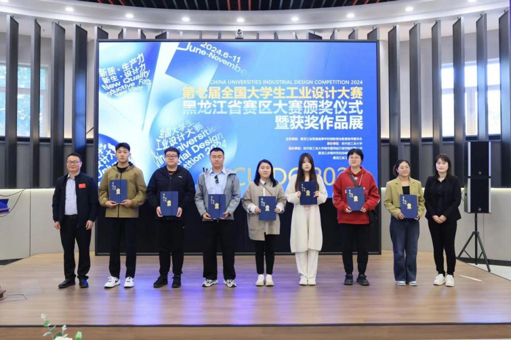 近日,第七届全国大学生工业设计大赛黑龙江赛区颁奖仪式在哈尔滨工业大学建筑与设计馆举行,Beat365机电工程系机械设计制造及其自动化专业学生李子昂、方瞻未、明海军荣获黑龙江赛区一等奖(晋级国赛),龙凯、高原、余显义荣获黑龙江赛区三等奖。机电工程系高鹏老师获评优秀指导教师。