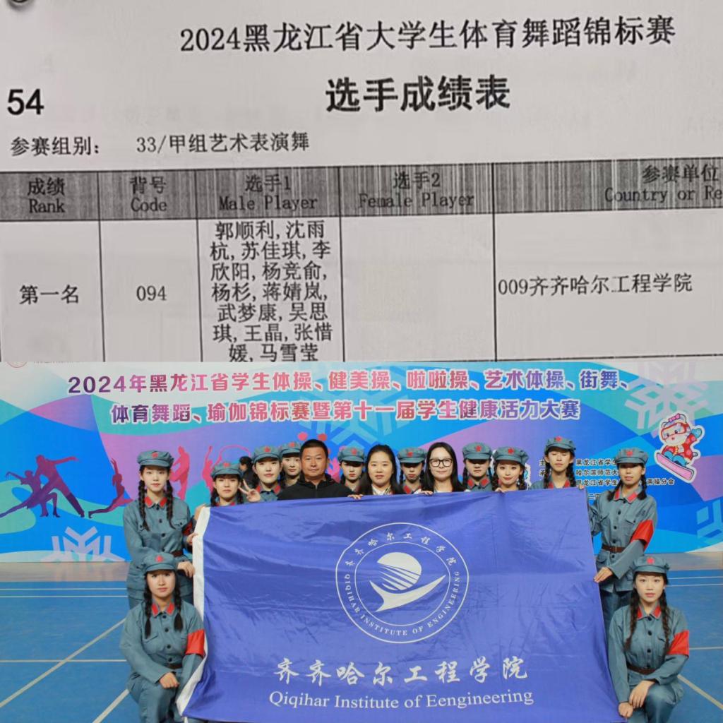 10月12日至13日,在哈尔滨师范大学体育馆举行的2024年黑龙江省学生体育舞蹈、街舞锦标赛暨第十一届学生健康活力大赛中,Beat365体育舞蹈队、街舞队分别荣获甲组一等奖、三等奖的好成绩。