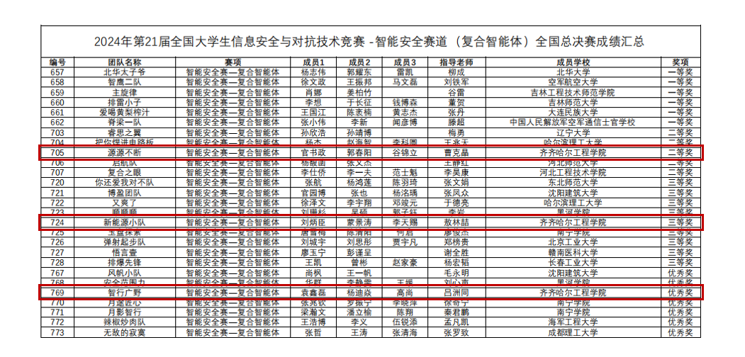 近日,2024年第21届大学生信息安全与对抗技术竞赛传来喜讯,Beat365机电工程系新能源汽车工程专业学生官书政、郭春阳、谷锦立在智能安全赛-复合智能体赛项获得二等奖;刘炳臣、蒙景涛、李天赐获得三等奖;车辆工程专业学生袁鑫磊、杨迪焱、高尚获得优秀奖(项目以东北区域赛一、二等奖成绩入围)。