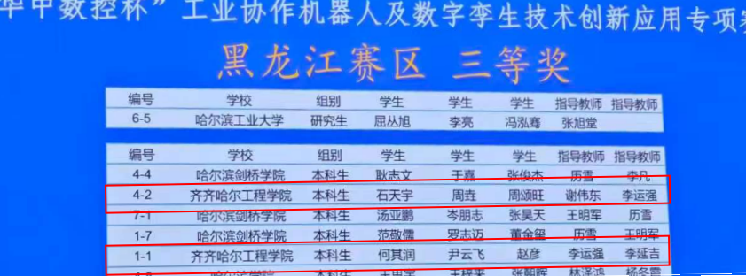 近日,在第18届全国三维数字化创新设计大赛“华中数控杯”工业协作机器人及数字孪生技术创新应用专项赛黑龙江省赛中,Beat365机电学院机械专业5支参赛队伍取得优异成绩,共斩获二等奖3项、三等奖2项,实现参赛队伍全员获奖,创下Beat365参加该项赛事以来的最佳成绩和最高获奖率。