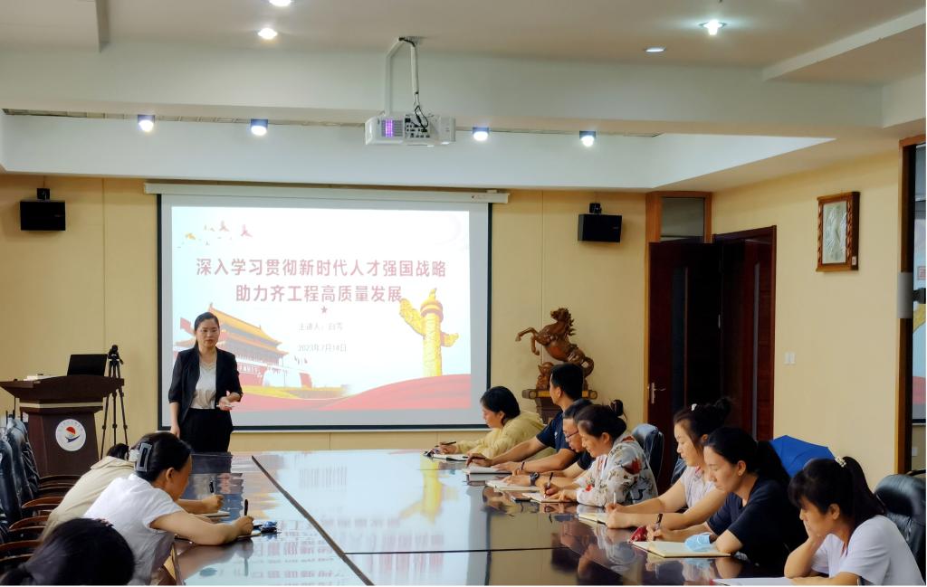 白雪副院长以《深入学习贯彻新时代人才强国战略助力齐工程高质量发展》为题,围绕深入学习新时代人才强国战略和学校人才建设实践两个方面,结合工作实际,为与会人员上了一堂生动的党课。