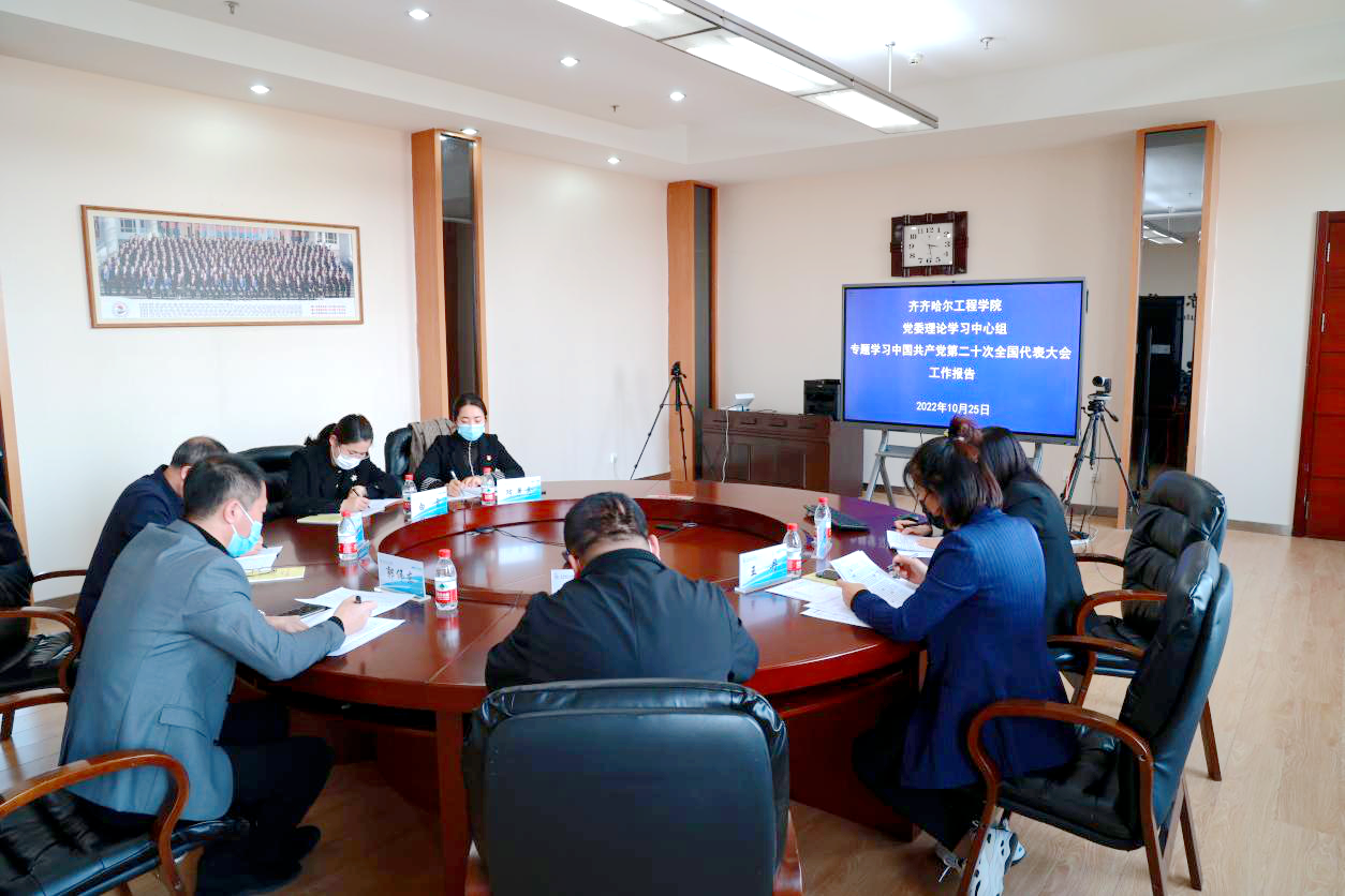 10月25日下午,学校党委理论学习中心组在图书馆圆桌会议室专题学习《中国共产党第二十次全国代表大会工作报告》和《中国共产党章程》。党委理论学习中心组成员和宣传部副部长参加,党委书记郭伟东主持。