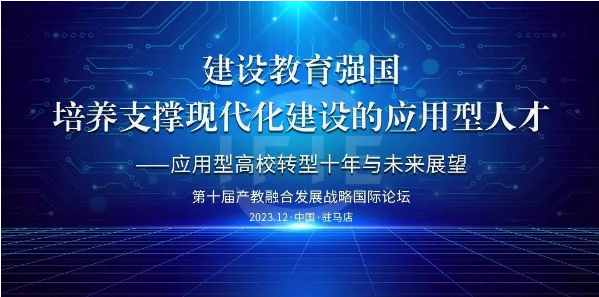 12月14日至16日,由教育部学校规划建设发展中心、中国职业技术教育学会、应用技术大学(学院)联盟主办,驻马店市人民政府、黄淮学院承办的第十届产教融合发展战略国际论坛在驻马店市举行。来自德国、英国、荷兰、法国、巴基斯坦等国家的高校和学术组织代表以及全国各省、自治区、直辖市行政部门代表,全国应用技术大学(学院)联盟及地方应用型高校联盟、高等学校和职业院校、行业组织与领先企业、专家和代表约300人参加本届论坛。