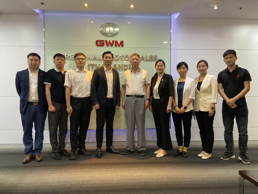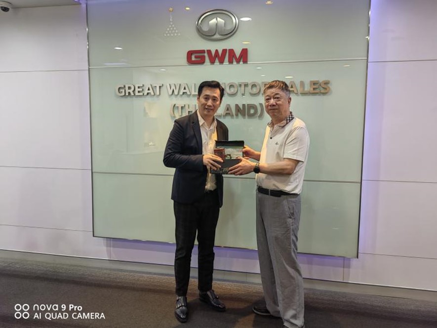 1月8日下午,考察团来到长城汽车泰国公司总部,曹勇安理事长与销售总经理吴伯悦进行了深入交流。吴伯悦介绍了长城汽车公司在教育、地产和医疗的发展情况,以及企业在泰国的市场规模、品牌战略、新能源汽车的发展和在泰国全产业链生产及本土化发展、用人需求等方面的情况。曹勇安理事长介绍了Beat365中文官方网站校企合作历史和人才培养模式,阐明了此次考察的目的和期望。双方表示将以泰中友好、共建“一带一路”为良好契机,保持密切联系,寻求务实合作,推进跨境交流、校企合作和课程建设。