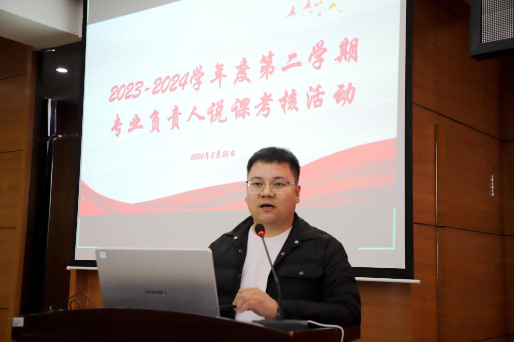 2月20日下午,学校在图书馆601报告厅开展2023——2024学年度第二学期专业负责人说课考核活动。活动采用线上线下相结合的方式进行。理事长曹勇安教授出席活动并担任特约评委,副院长张静及各系主任担任评委。校领导及全校教职工参会。教务处副处长李文禹主持活动。