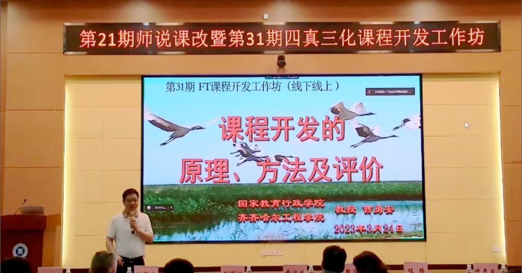 3月24日下午,为集中精讲以及分班研修阶段,应用型课程建设联盟讲师团专家潘宇教授、刘春媛老师分别作了《AI赋能高校课程建设新模态》《一级矩阵》讲座。