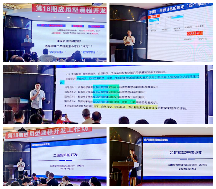FT团队成员宫玉斌以《AI赋能高校课程建设新模态》为题讲解了课程通平台的架构与使用;刘春媛、郭玲玲、张洪岩老师集中精讲矩阵图法;孟艳辉老师细致讲解开课说明;指导教师团队基于学情提供精准辅导。
