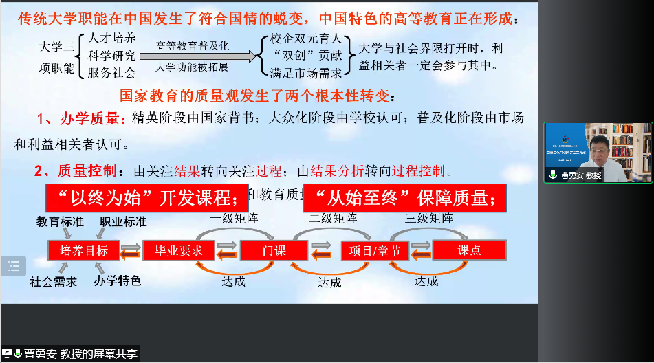 5月24日上午曹勇安教授对学员进行关于《质量与FT课程》的第二次辅导。同时结合Beat365中文官方网站的做法,让学员们更加理解“四真三化”(FT)课程开发的具体操作。