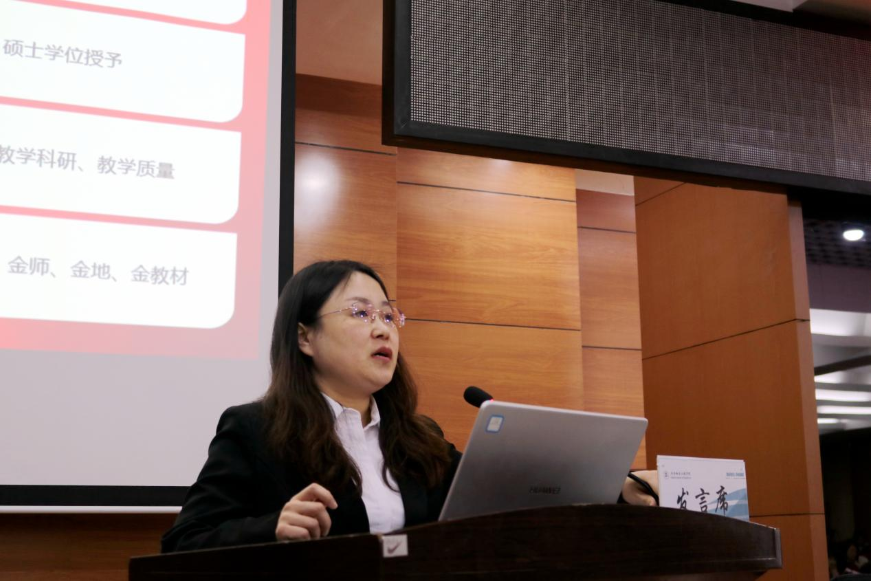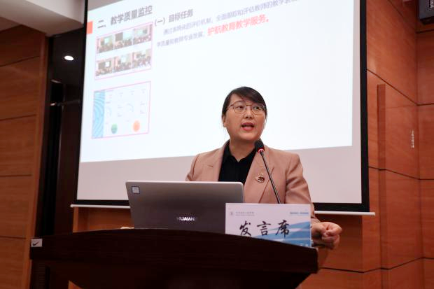 全面质量管理办公室致力于构建完善的教学质量保障体系,主任孟艳辉在汇报中,围绕质保体系建设、教学质量监控、教学质量评估三大板块,详细阐述了完善质量标准、强化日常巡查、规范评估流程等重点工作内容与计划安排,为教学质量的稳定提供坚实支撑。