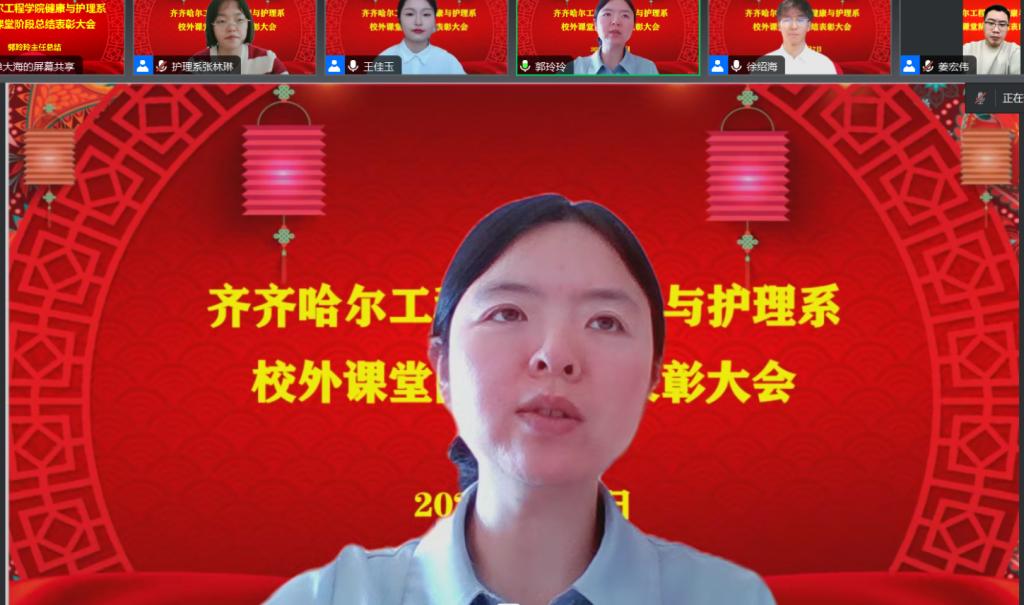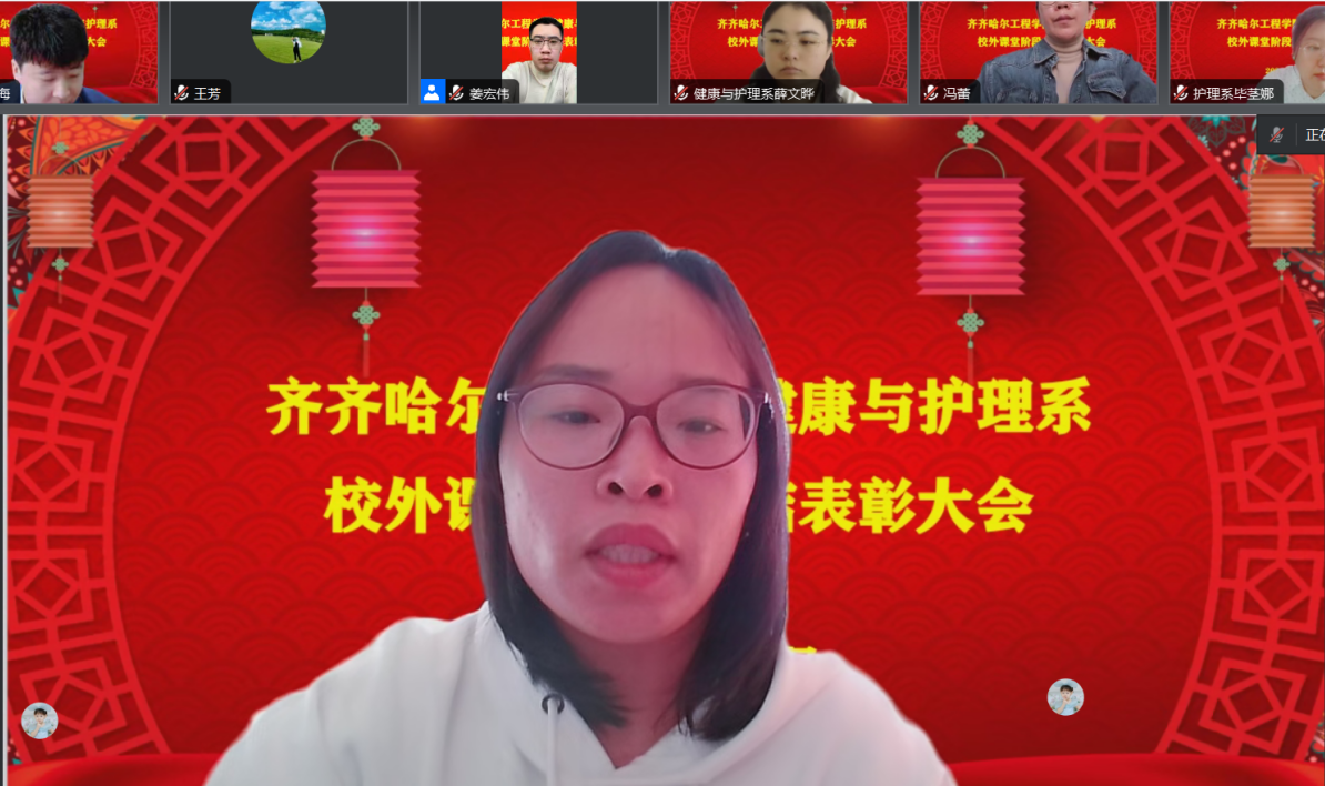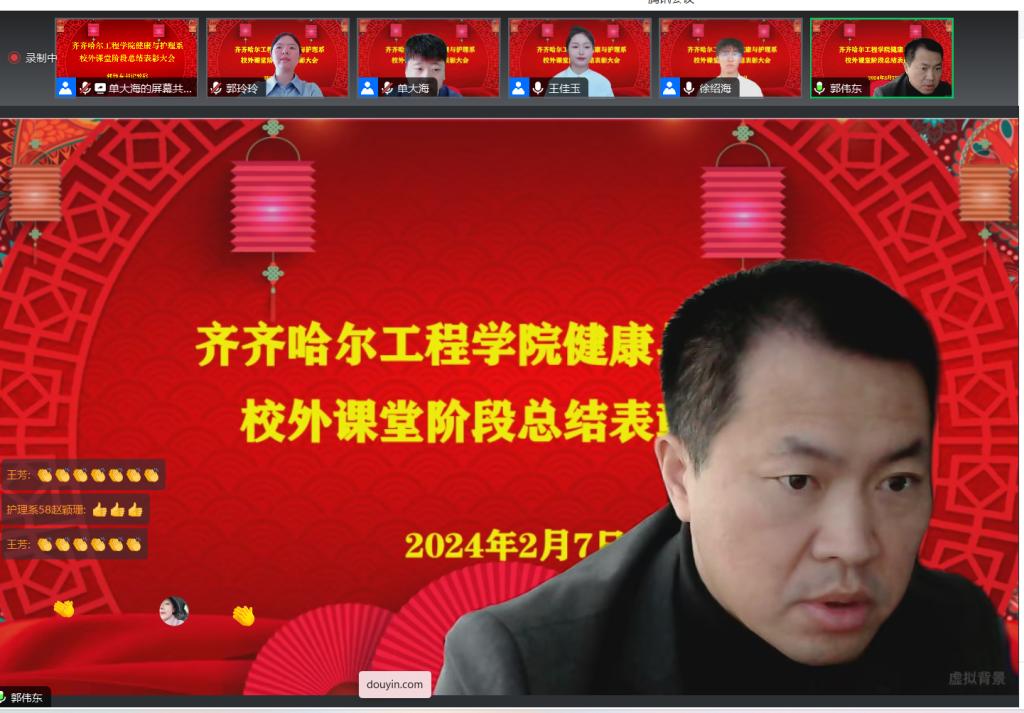 2月7日,健康与护理系召开2023年校外课堂阶段总结表彰大会,会议采用腾讯会议形式,学校党委书记郭伟东、健康与护理系主任郭玲玲、党总支书记张林琳、党总支副书记姜宏伟、系部全体教师、生涯导师以及学生代表200余人参加会议。