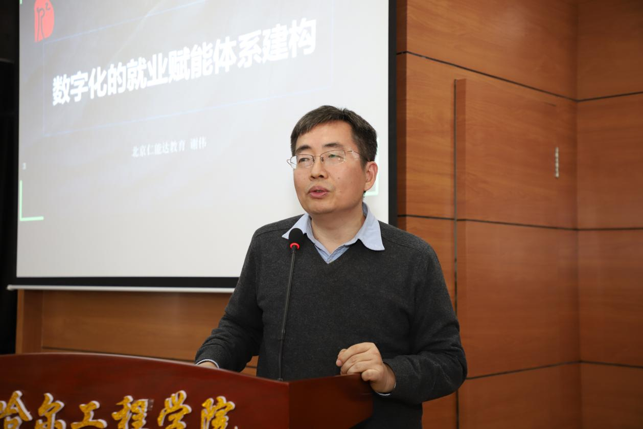 东北农业大学大学生职业发展中心主任郭勇作《以生涯为核心的就业育人体系构建探究及拓展构想》讲座。从就业育人体系构建的时代背景分析、就业指导和生涯辅导存在的现实问题、生涯实验室建设内涵逻辑框架搭建、“五位一体”生涯就业教育模式拓展四方面进行讲解,强调学生就业首先要具有职业认知,做好明行业、知职业、懂岗位、早规划的职业定位。