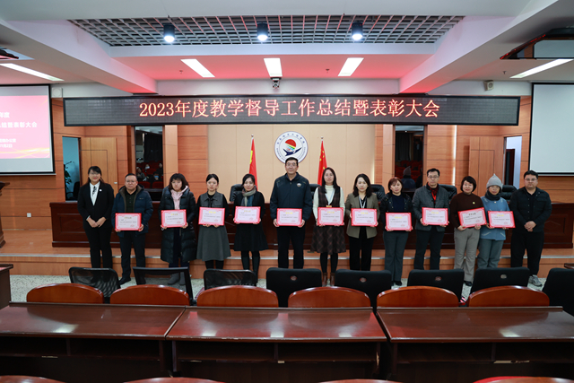 1月2日下午,在图书馆601会议室召开全校2023年度教学督导工作总结表彰大会。会议由全面质量管理办公室主任孟艳辉主持,副院长张静、教务处副处长李文禹、各教学单位教学工作副主任、校系两级教学督导员参会。