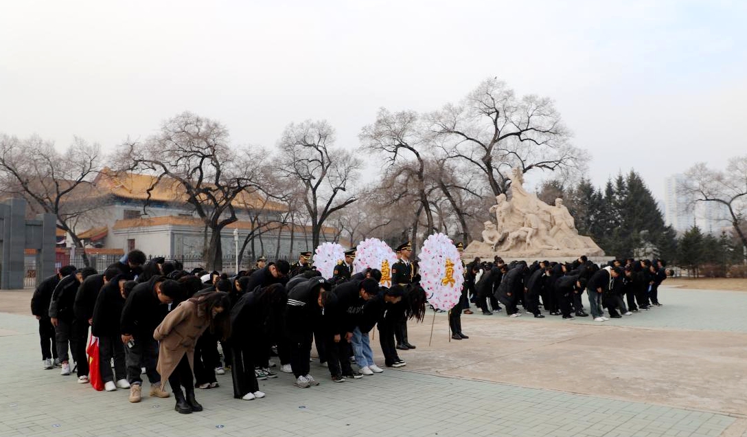 教官团向革命先烈敬献花圈,全体师生行三鞠躬礼,表达对英烈的缅怀和崇敬之情。