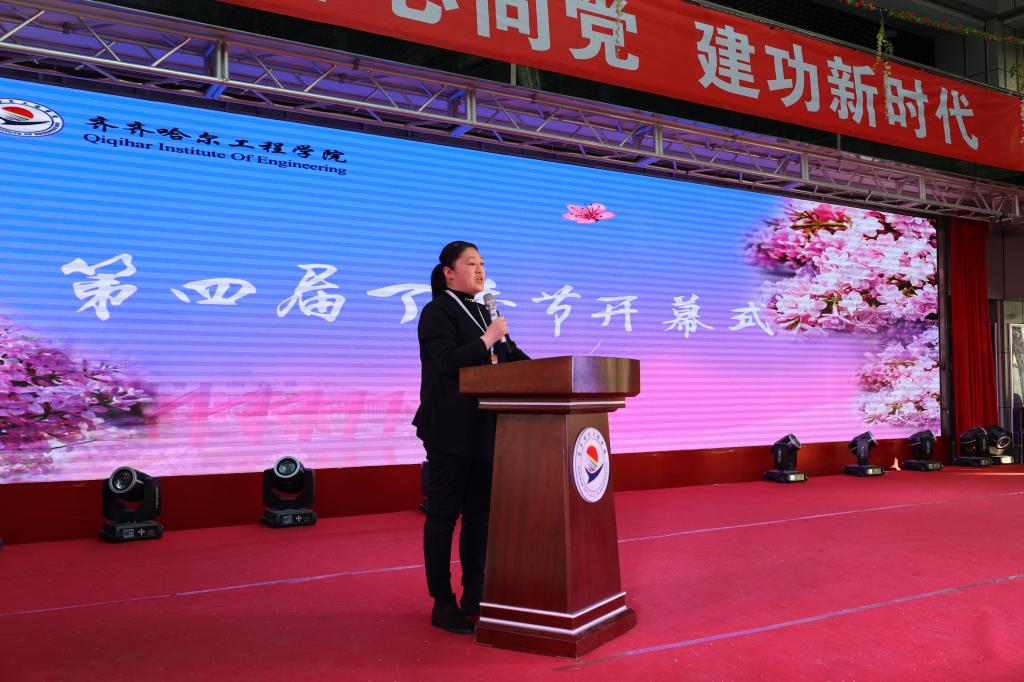 团委书记郭明敬宣读了关于第四届丁香节活动文件,本届丁香节历时一个月,组织开展“诵丁香、画丁香、舞丁香、唱丁香、寻找丁香学子”等活动,以活动落实美育,以活动发现典型、宣传典型。