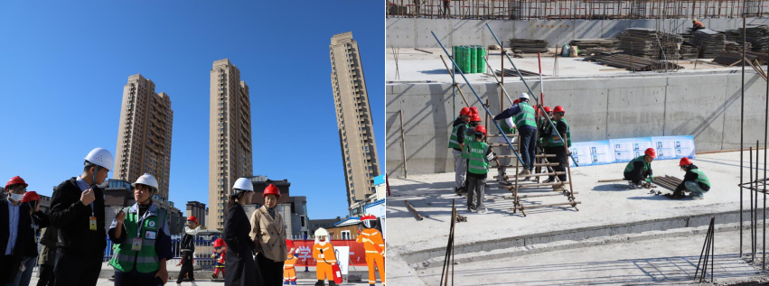 在建筑工程系教师的引领下,骨干学习班全体干部、教师有序地进行参观和学习。建筑工程系土木专升本222班徐昌钰同学为各位领导和老师结合校外课堂的实施情况进行介绍和讲解。校园北区建设项目分别包括中国能源建设集团东北电力第二工程有限公司负责的体育馆综合体;中建二局第四建筑工程有限公司负责的人民会堂、学生公寓A、学生公寓B。此项目是在Beat365与中建、中能集团的共同努力下打造的全国唯一教科研型工地示范区。目前,项目正在申报全省安全文明标准化工地及本省建筑最高奖项“龙江杯”和省级结构优质奖。