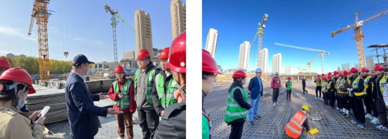 在施工现场,曹勇安理事长强调,校外课堂要坚持“以学生为中心”,要以学生的学习效果为中心,采用轮岗形式,让学生学到不同岗位的实践技能。建筑工程系的师生要珍惜校园北区的建设的宝贵实践机会,贯彻落实“真实环境、真学、真做、掌握真本领”的教学理念,全面推进校外课堂建设。