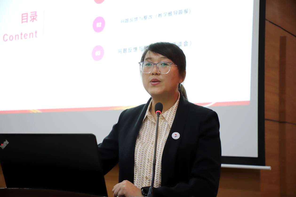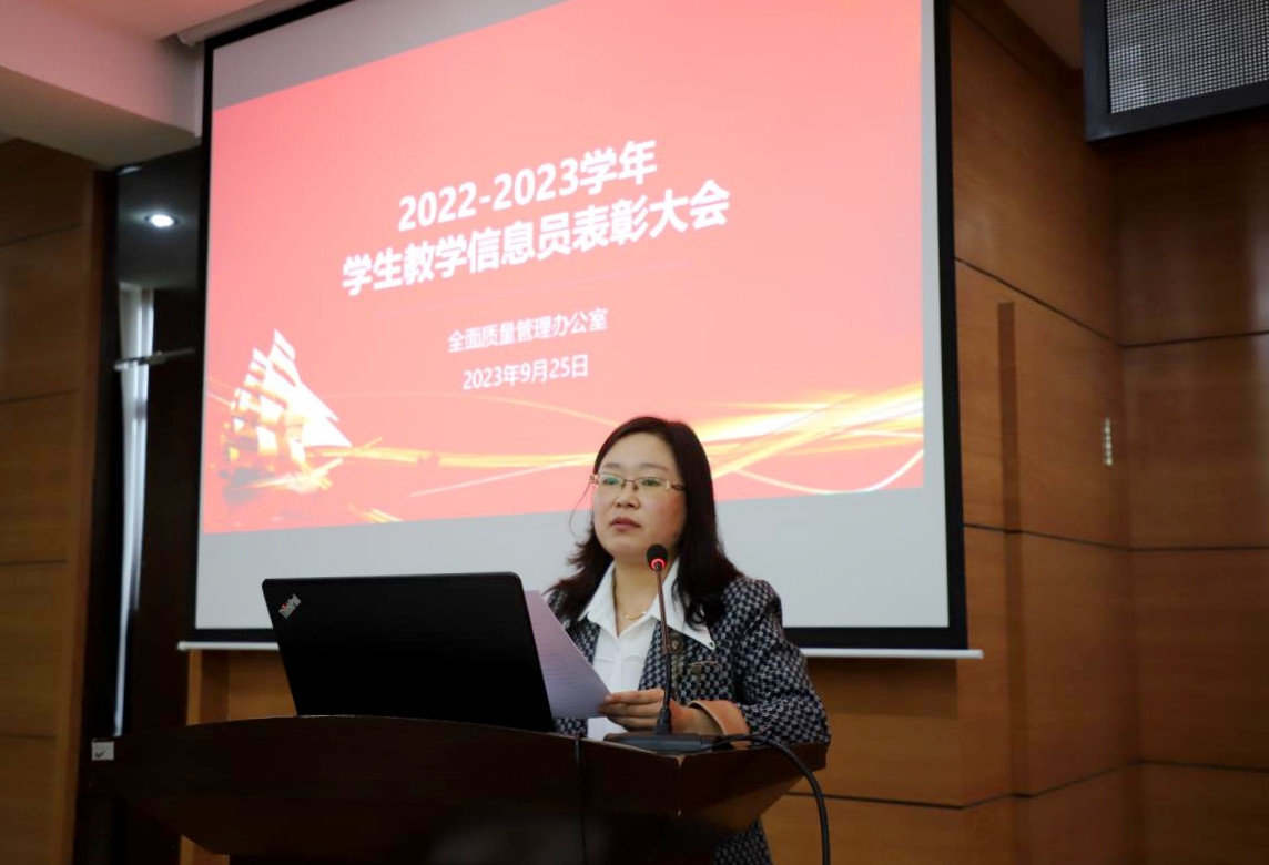 会上,全面质量管理办公室主任孟艳辉对2022-2023学年学生教学信息工作反馈情况进行总结并充分肯定学校学生教学信息员工作。
