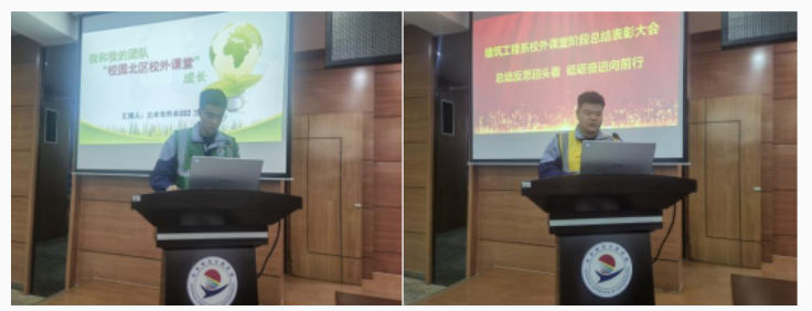 土木工程专业专升本222班王秋、工程管理专业202班杨春生同学作为学生代表发言,他们表示,校外课堂的锻炼使同学们的理论与实践技能得到融合与提升,同时也增强了团队合作意识和能力,很多同学都签到了心仪的工作。感谢学校,感谢老师。