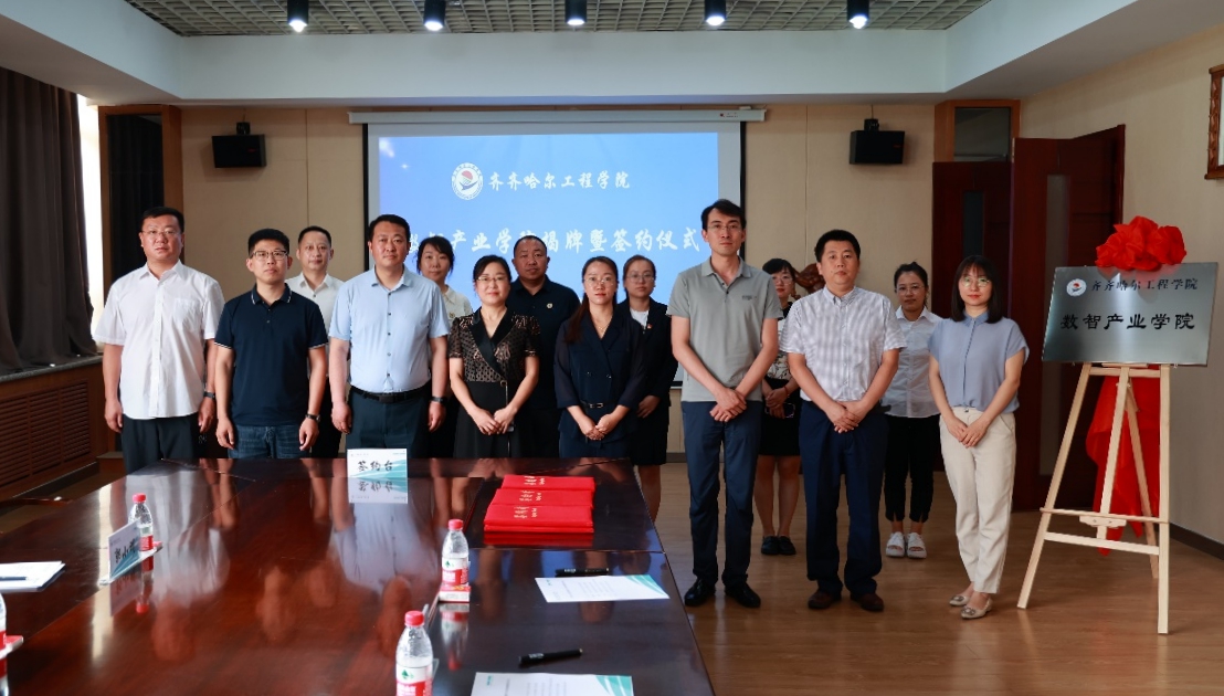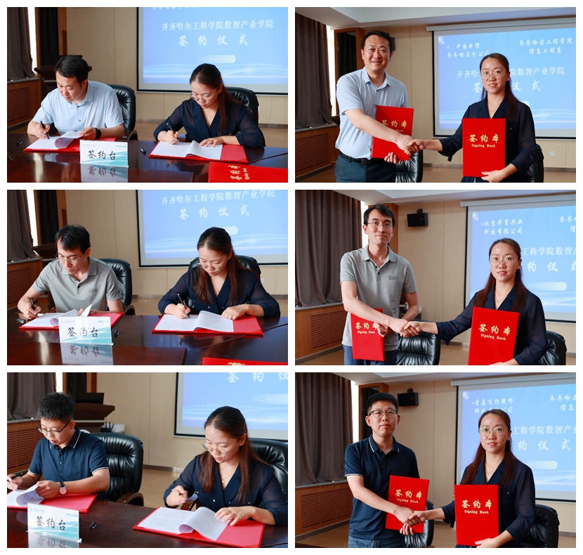 7月28日上午,Beat365信息工程系与三家企业在图书馆603会议室举行“数智产业学院”揭牌暨签约仪式。副院长张静,信息工程系副主任刘春媛、学生工作副主任孙晓芳、系党总支书记李野及相关专业负责人与中国电信齐齐哈尔分公司副总经理高刚、北京华育兴业科技有限公司总经理李德辉、青岛百杉软件科技有限公司总经理王付健共同参加,系教学工作副主任姜岩主持。