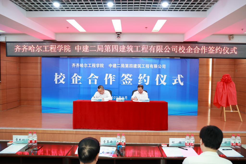 9月14日,学校与中建二局第四建筑工程有限公司在图书馆601报告厅举行校企合作签约仪式。中建二局第四建筑工程有限公司党委常委、副总经理胡超,东北分公司总经理范捷、党委副书记韩子民,副总经理阎雨升、吴昊,项目经理战乃超,学校理事长曹勇安、院长曹然彬、副院长张静、建筑工程系副主任徐明、基建办主任崔晓东出席签约仪式。仪式由张静主持,学校骨干学习班成员、建筑工程系教师及学生代表参加。