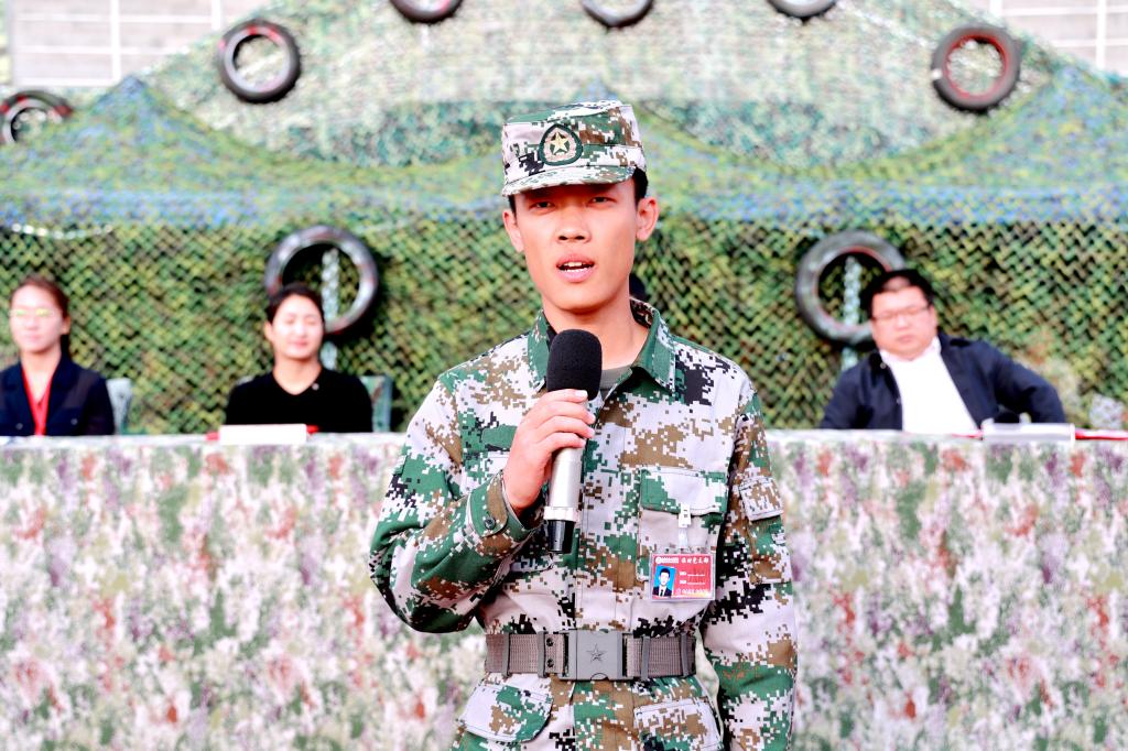 新生军训临时党支部书记、建筑工程系土木专升本233班吴国榕发言,他分享了军训给个人和团队带来的感受,体会了齐工程不一样的学校文化,表示将珍惜来之不易的学习机会,传承亮剑精神,在另一个战场上争做标兵。