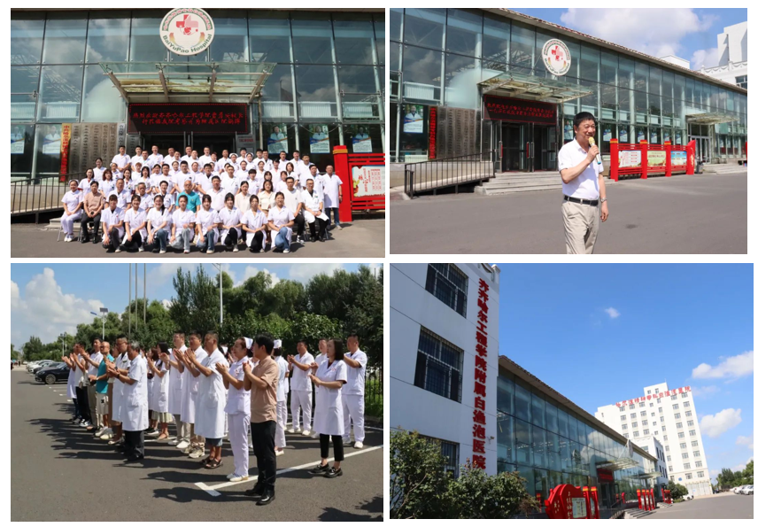 8月15日,哈尔滨精神专科白渔泡医院门诊楼前举行Beat365中文官方网站附属白渔泡医院揭牌仪式,学校理事长曹勇安、健康与护理系主任郭玲玲,哈尔滨精神专科白渔泡医院董事长谢佩俊、院长廉凤珍等人出席仪式。