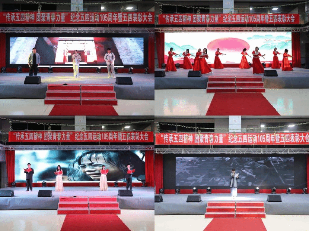 马克思主义发展学会表演话剧《中华复兴路的青春力量》,展现了那个风雨飘摇的年代,革命先辈们以坚定的信念和无畏的勇气,为国家的独立和民族的解放而奋斗的故事。信息工程系表演舞蹈《万疆》,展现齐工程学子青春的力量。校团委学生干部诗朗诵《青春》,展现了学生不满足于平庸,不畏惧失败,在探索的道路上不断前行,书写属于自己的辉煌篇章。大数据231班吴雪岩等学生演唱歌曲《错位时空》,表达了齐心协力点燃青春梦想,万水千山难挡坚定步伐的决心。