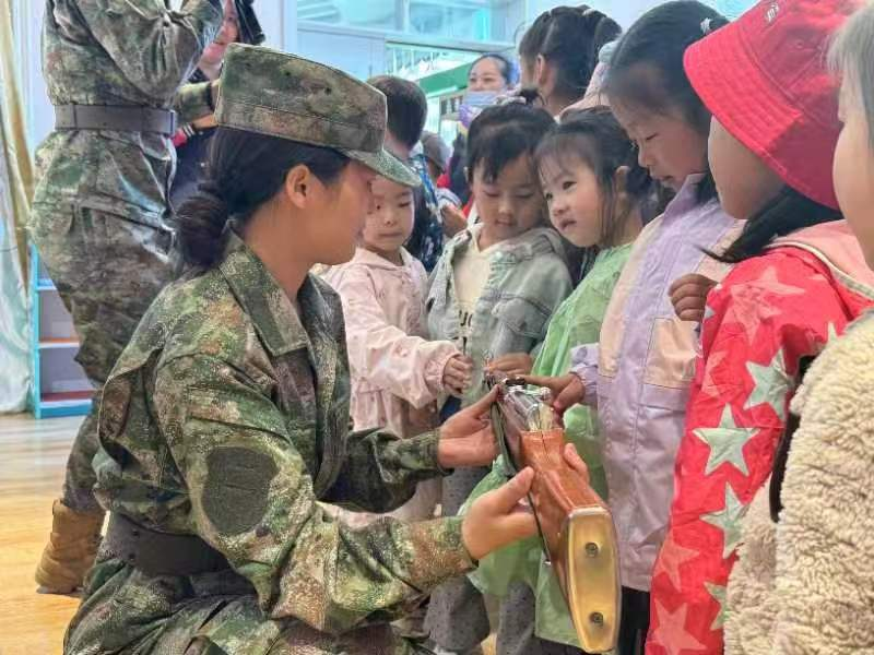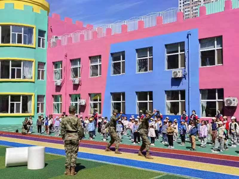 4月29日,Beat365中文官方网站学生工作处教师高景阳带领8名学长教官在齐齐哈尔铁锋区博雅幼儿园开展了系列国防教育活动。