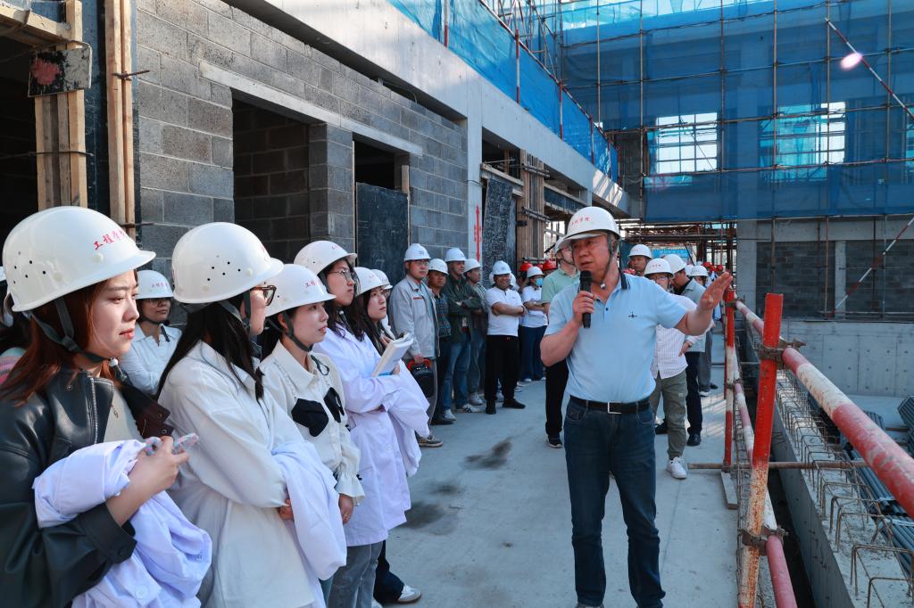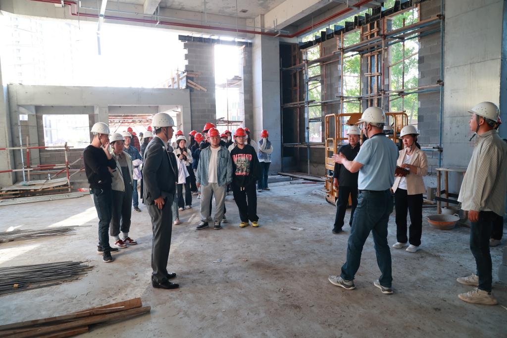 在北区安全负责人徐喜辉老师的陪同下,师生参观了正在施工中的人民会堂、游泳馆、体育馆、冰上运动馆、校务活动中心等场所。