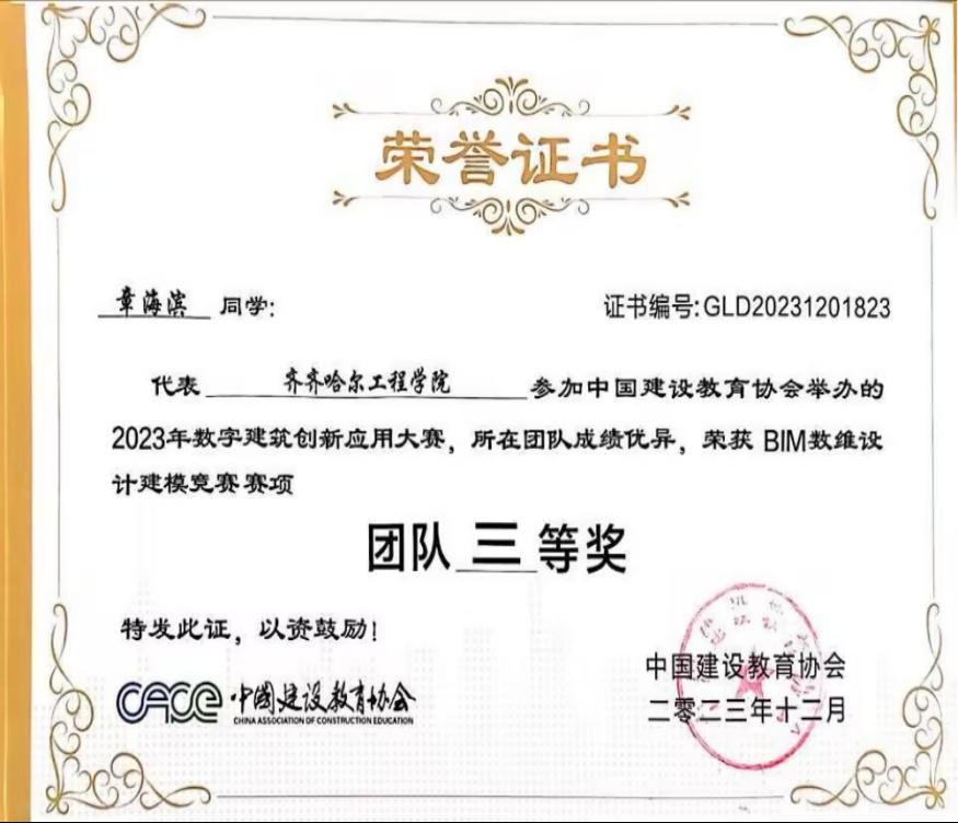 她作为生涯导师,积极鼓励学生参与科研实践,培养创新思维,多次指导学生参与创新训练计划。通过比赛能够使专业知识和各项技能有所提升,在备赛过程中,尽可能地为学生提供帮助和指导。她所指导的学生多次在创新创业、学科竞赛和兴趣爱好比赛中荣获荣誉,同时,李微也多次获得优秀指导教师称号。其中工管211班章海滨获得全国2023年数字建筑创新应用大赛团队三等奖。