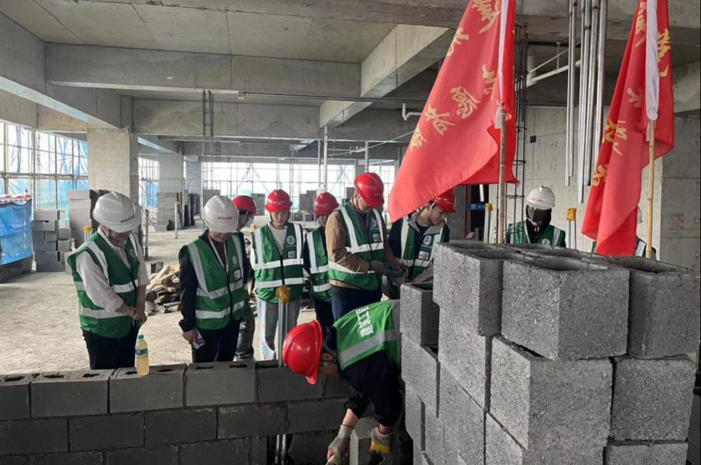 在样板间的建设过程中,实践班的学员参与墙体砌筑、质量检验等核心环节,这不仅能够让学生能将课堂所学理论知识应用于实际,还极大地提升了实践能力。“样板间”不仅是一个建筑项目,同时还是实践班学生全程参与、动手实践、将理论应用于实践活动中的工程实践作品。