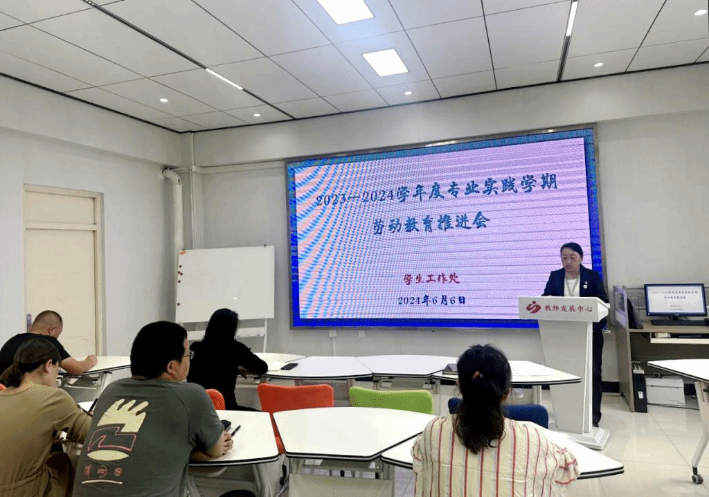 为进一步加强劳动教育的理论研究和实践探索,充分发挥劳动教育的综合育人价值,6月6日下午,学生工作处在二号教学区2102教室召开2023-2024学年度专业实践学期劳动教育推进会,常务副院长陈景鑫、学生工作处全体人员、各系党总支副书记及专业负责人参会。会议由学生工作处负责人王丽萍主持。